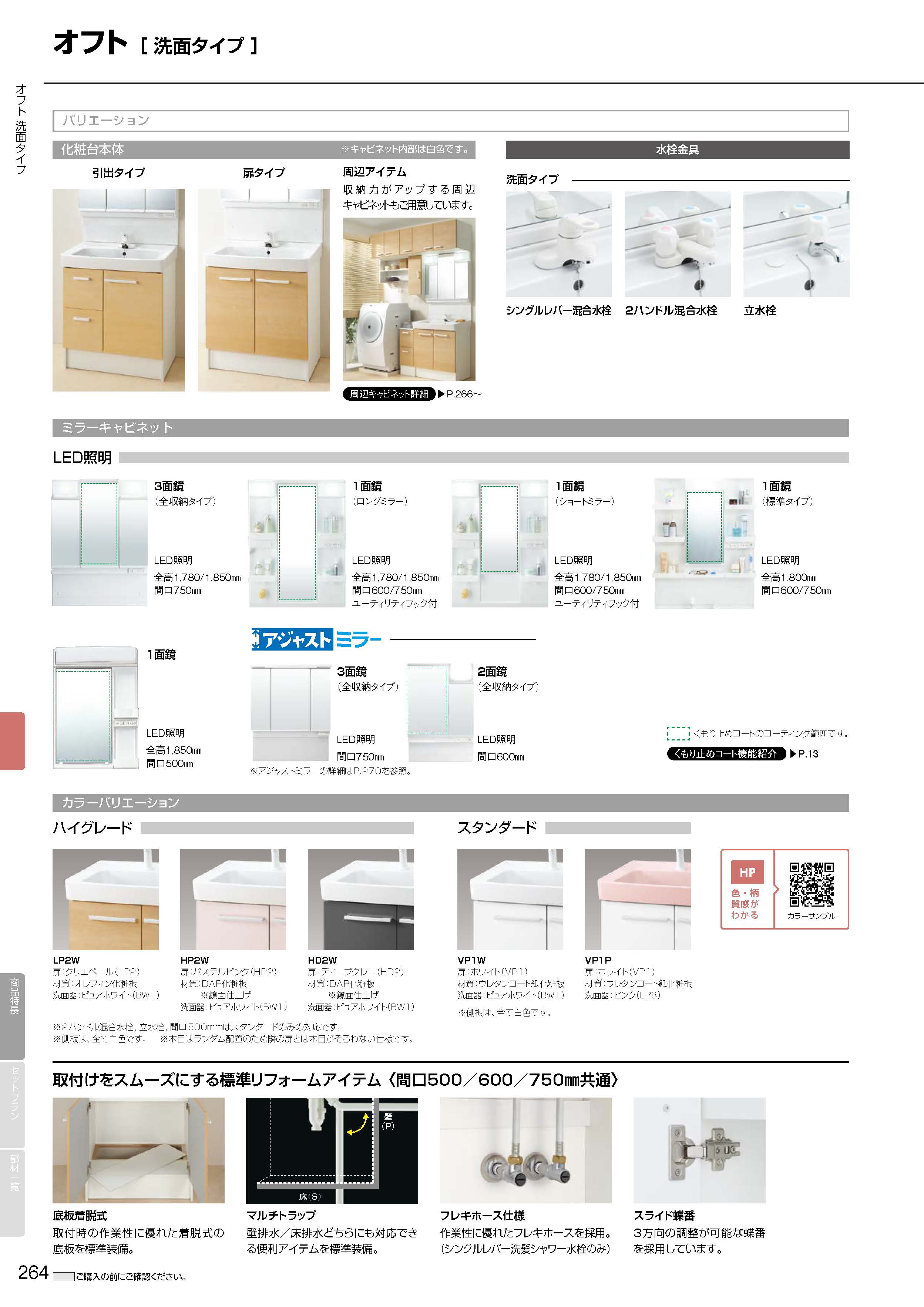 2ハンドル混合水栓タイプ・扉タイプ・ホワイト色