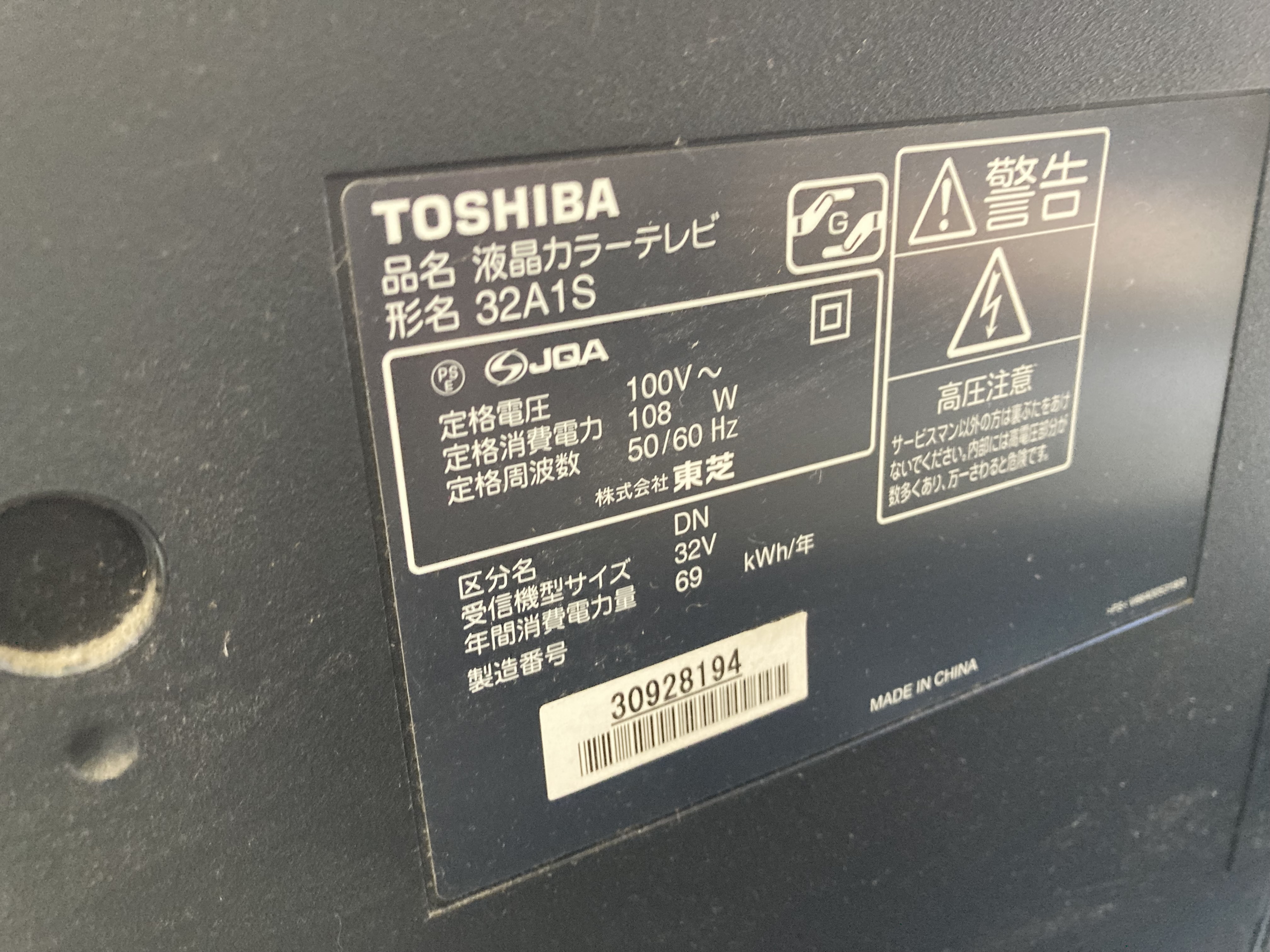 東芝 11年製 リモコン付き