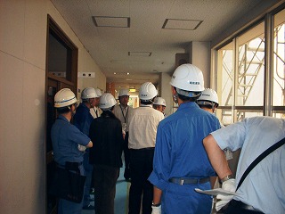 8月11日(月) 文部科学省見学会の開催 参加者 文部科学省2名 横浜市教育委員会4名 横浜市まちづくり調整局3名 設計監理者2名 昭和建設2名 計13名 開催趣旨 文部科学省の要望により 耐震補強工事がどのように行われているか非常に興味がある 現場視察として鉄骨ブレース設置、設置後外壁・サッシ取付、内装工事箇所を順に視察した。また、耐震鉄骨ブレースの工程説明及びそれに伴う諸説明を行いました。 最後に工事金額・耐震補強の横浜市のやり方(計画・調査・設計・実施・工法等)の質問がありました。