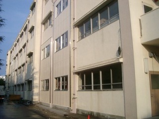 | 主要構造 | RC造地上4階建て | 工事概要 | ・鉄骨枠K型ブレース補強工事(計46ヶ所) ・鉄筋コンクート壁補強工事(1ヶ所) ・耐震スリット設置工事(両面20,片面134ヶ所) ・開口閉塞工事(2ヶ所) ・ピロティー・昇降口改修工事 ・外構改修工事 |